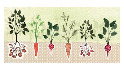 I have started growing lots of vegetables this year at home along with my two housemates, and they are growing like crazy, so with veg on the mind I jazzed them up in this illustration. Patchwork radishes.. I wish for them to come out of my allotment.